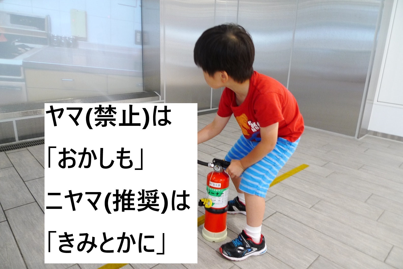 ヤマ(禁止)は「おかしも」(押さない、駆けない、しゃべらない、戻らない)。