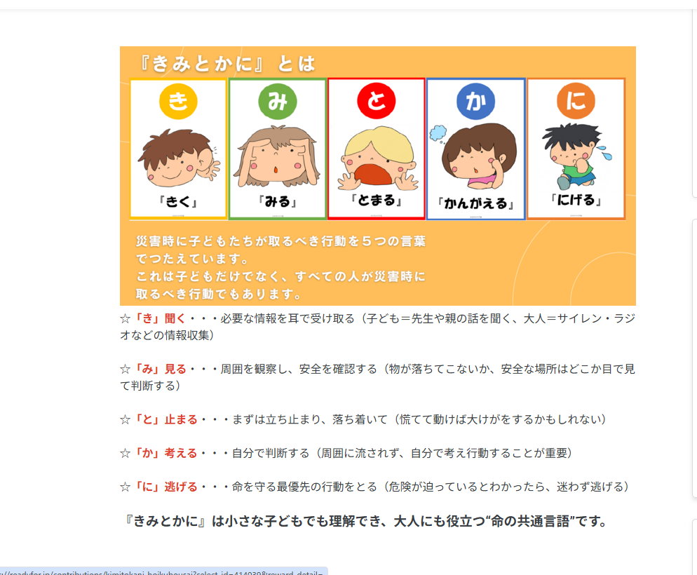 そしてニヤマ(推奨)が「きみとかに」(聞く、見る、止まる、考える、逃げる)。