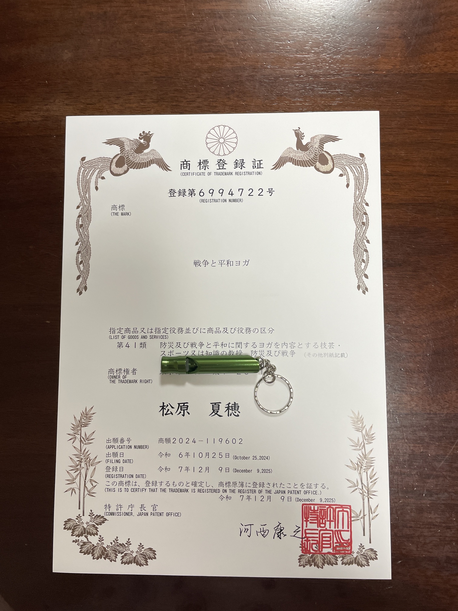 私が考案したヨガプログラム「戦争と平和ヨガ®」が商標登録を取得しました。