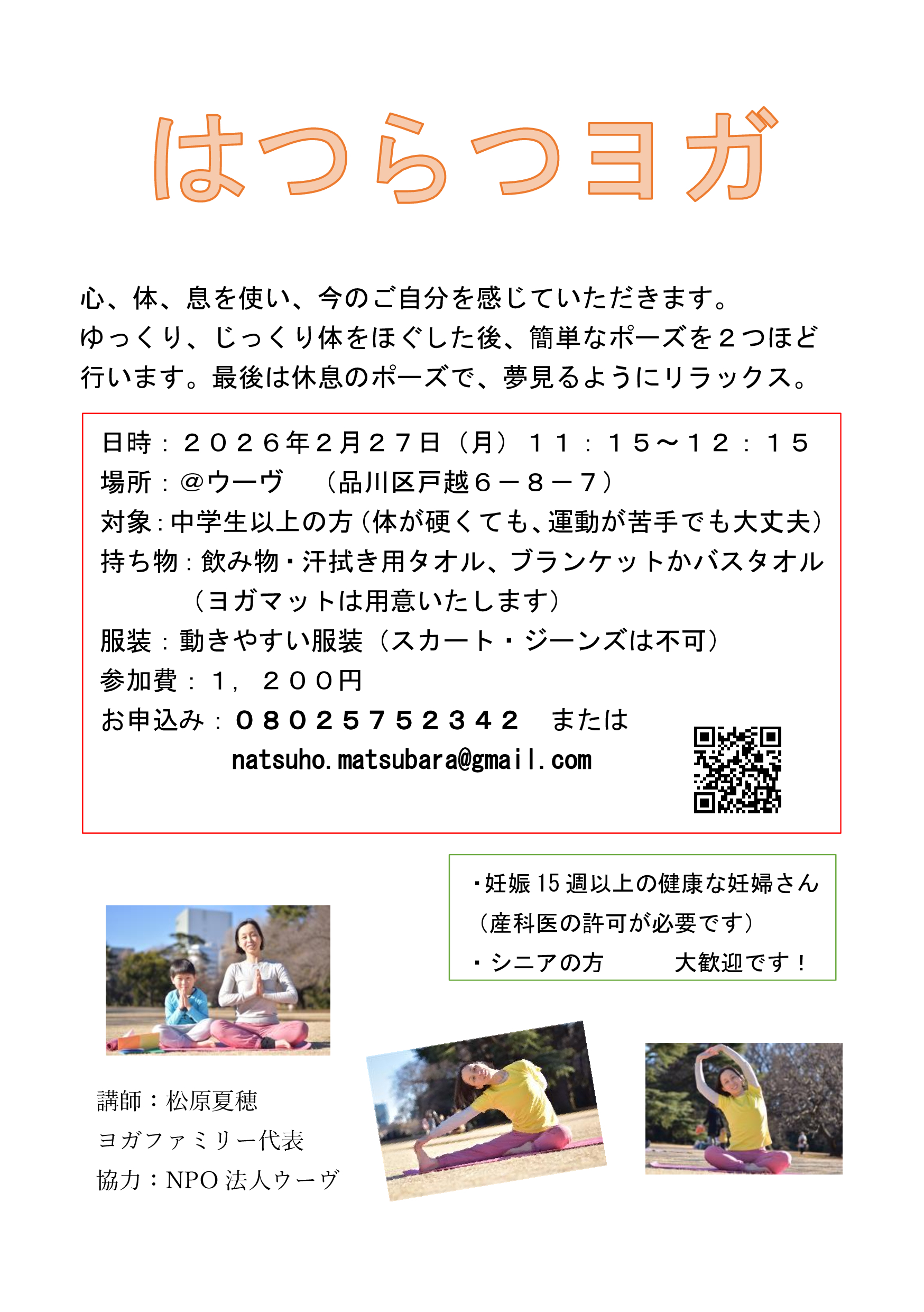 2026年2月27日(金)@ウーヴのヨガ教室のお知らせ