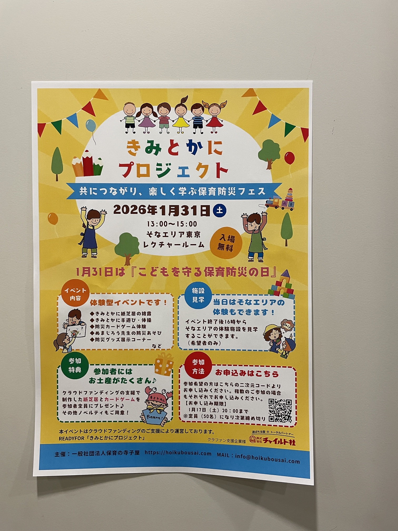 2026年1月31日一般社団法人 保育の寺子屋が主催する、防災体験イベント「きみとかにプロジェクト」に参加しました。