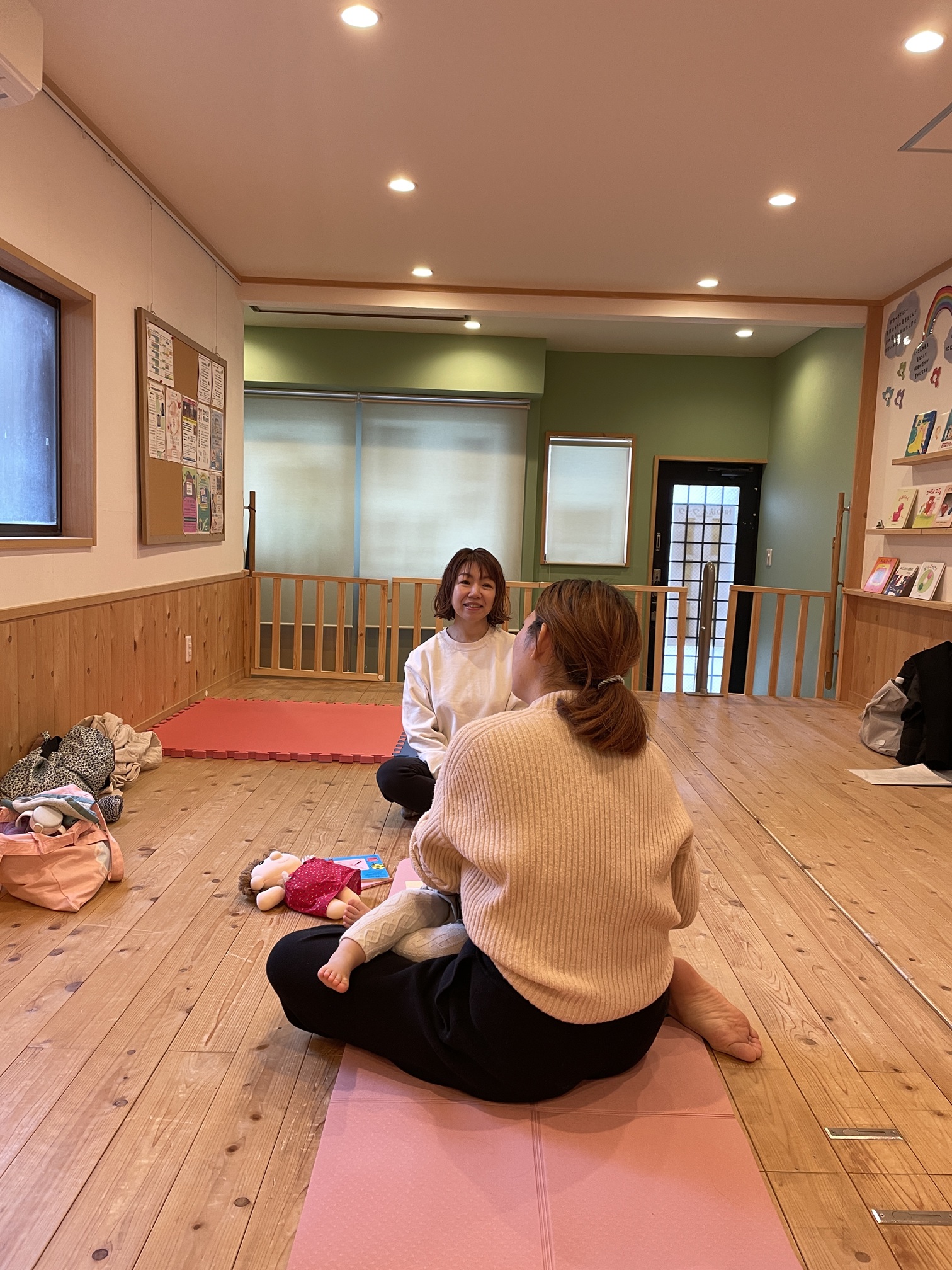 前半のヨガは私が、後半の入園準備お話会は、育児支援House助産師サロン代表の